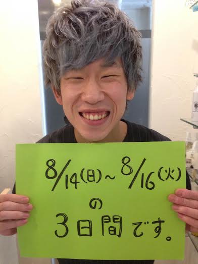 8/14(日)~8/16(火) の3日間です。
